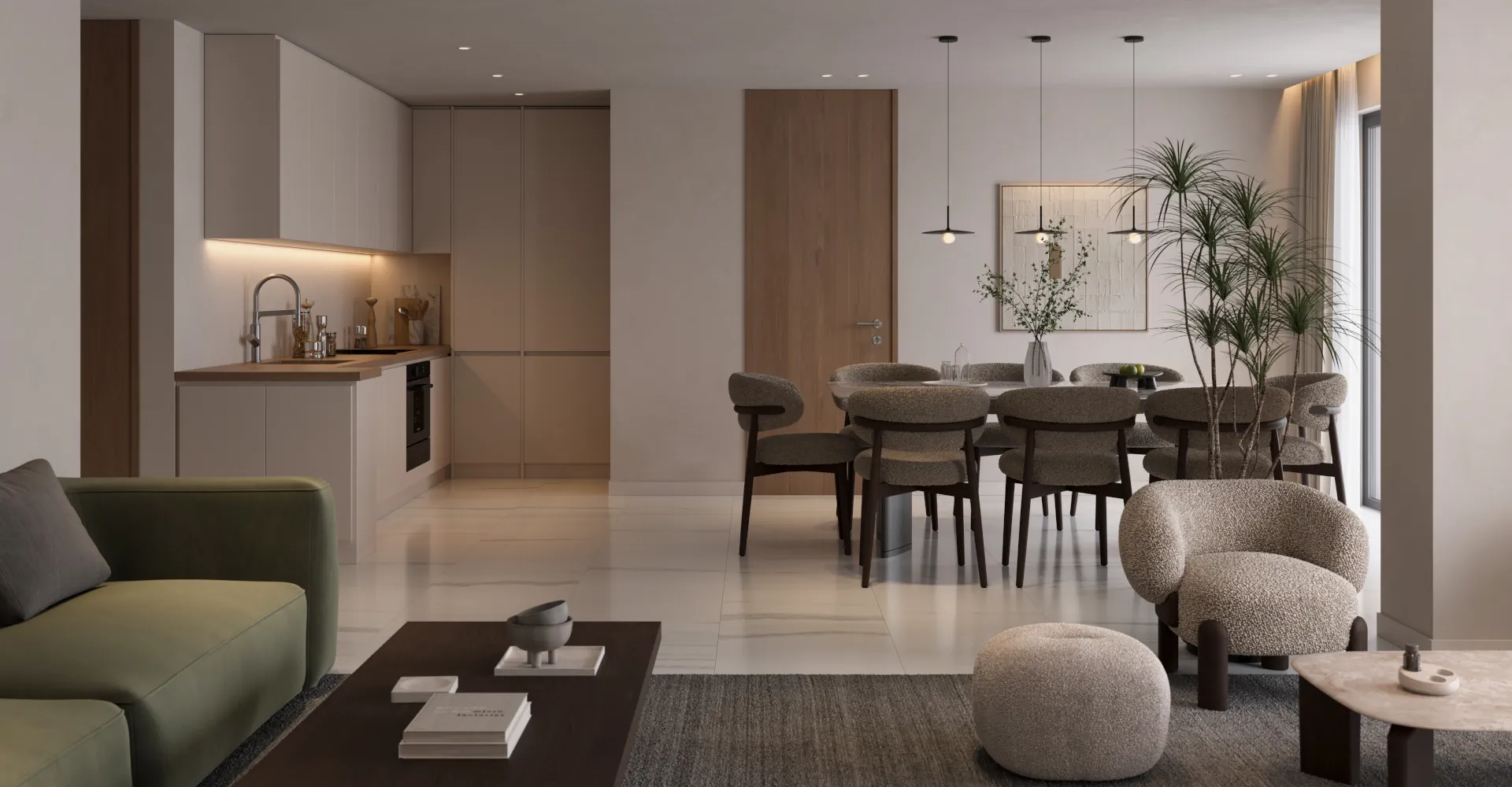 All carpentry elements will be factory-manufactured, with precise assembly and smooth surfaces.